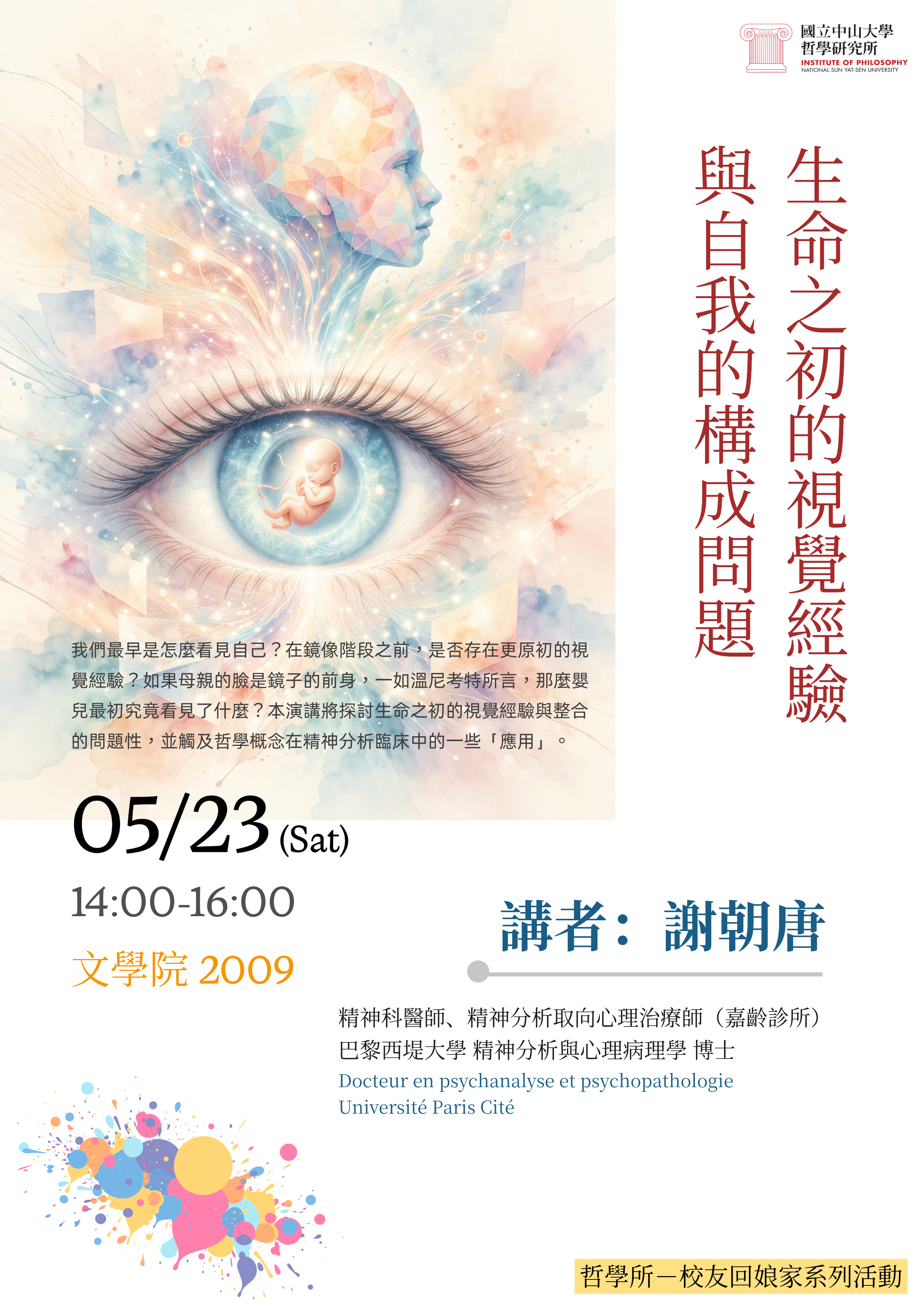 2026.05.23|校友回娘家:謝朝唐博士專題演講:生命之初的視覺經驗與自我的構成問題