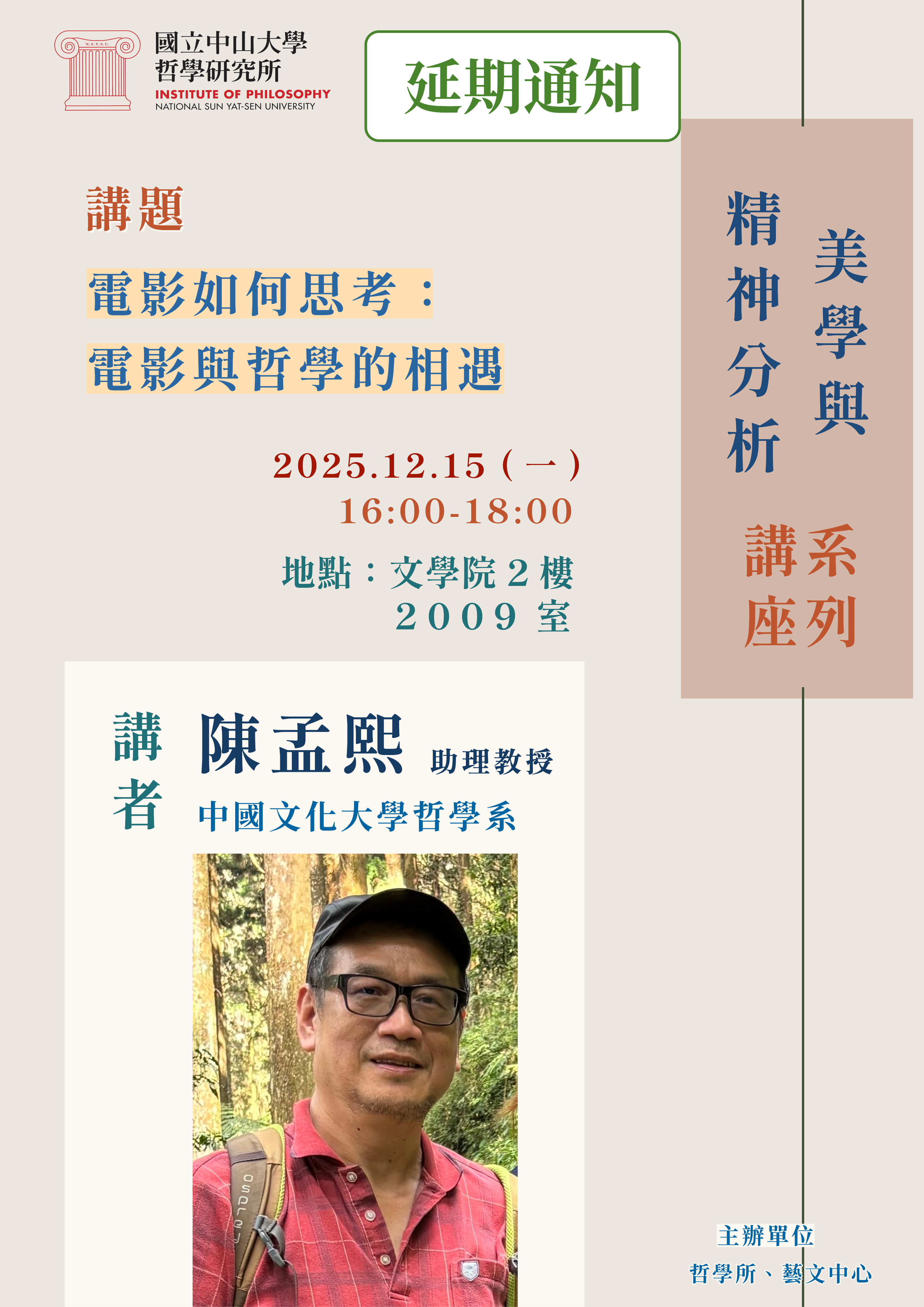 [延期通知] 2025.12.15|[系列演講] 陳孟熙演講:電影如何思考:電影與哲學的相遇